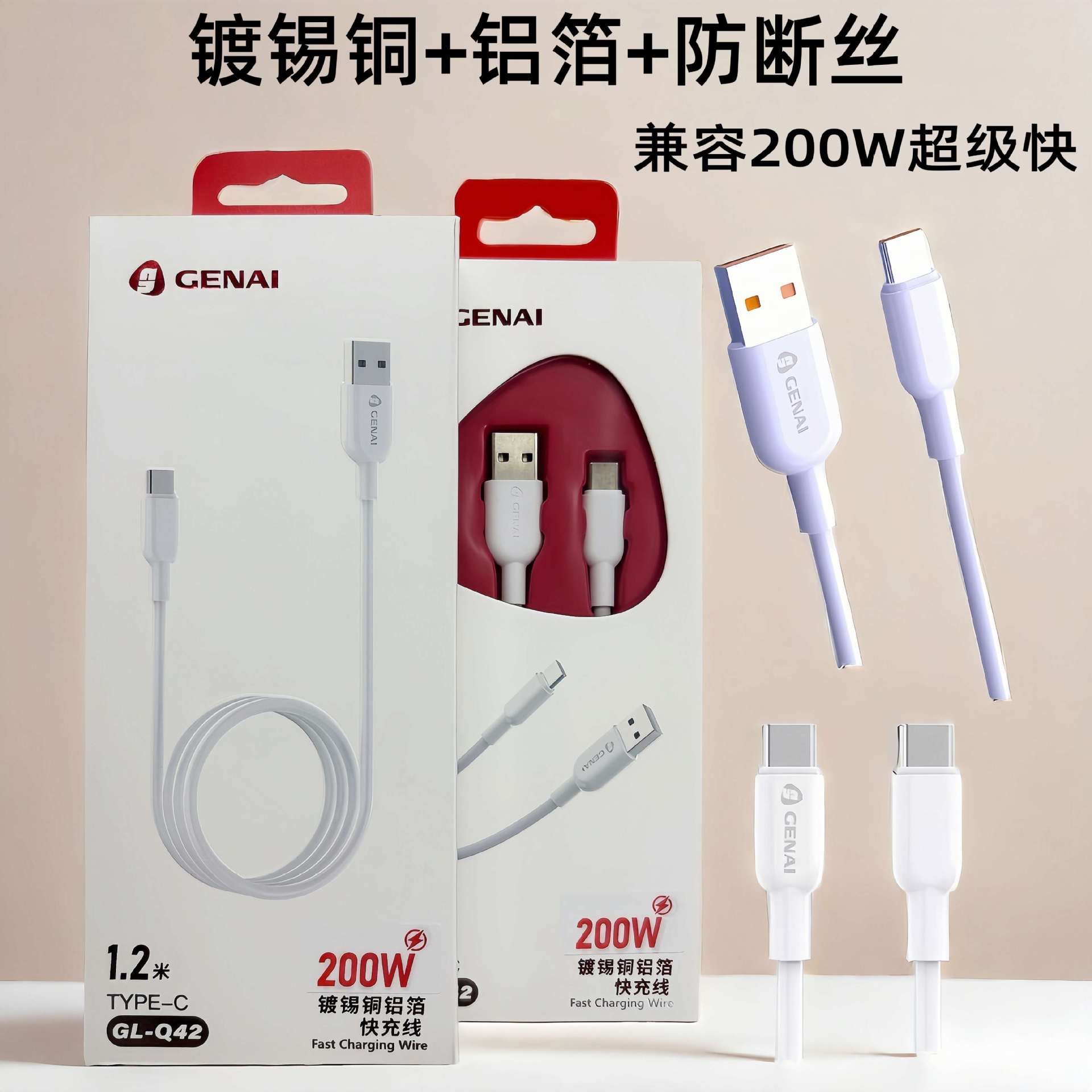 适用iphone苹果8-14系列数据线type-c华为安卓快充usb 充电线2m
