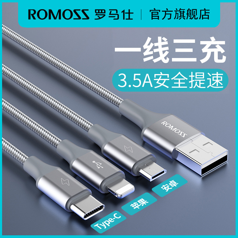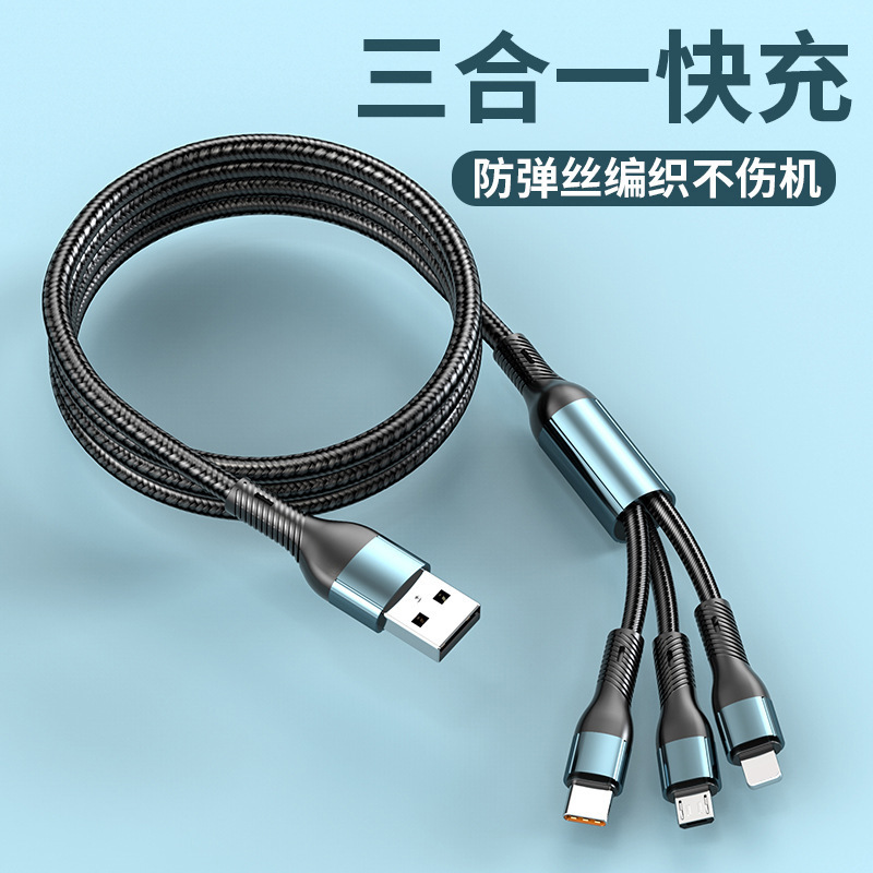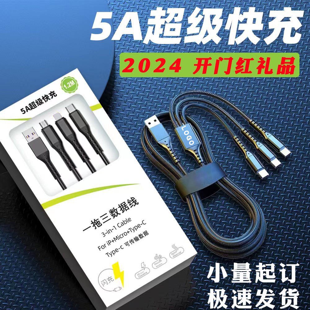 5A超级快充一拖三数据线渔网编织线公司礼品定制三合一充 电线