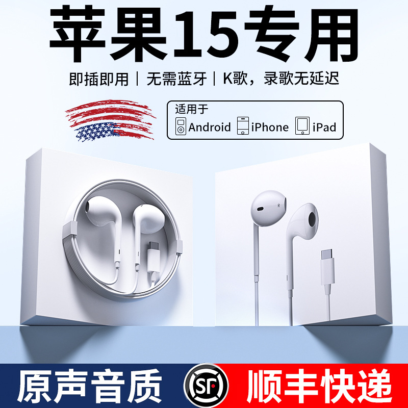适用苹果16pro有线耳机typec接口3.5mm线控iphone15promax圆plus