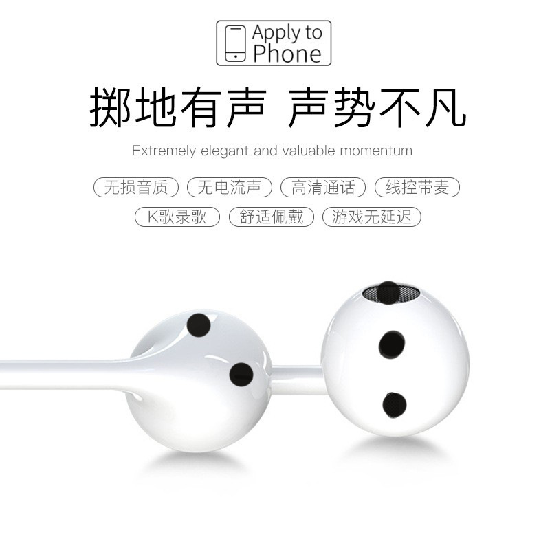 适用iPhone有线耳机圆孔带麦苹果安卓type-c/oppo 华为入耳式