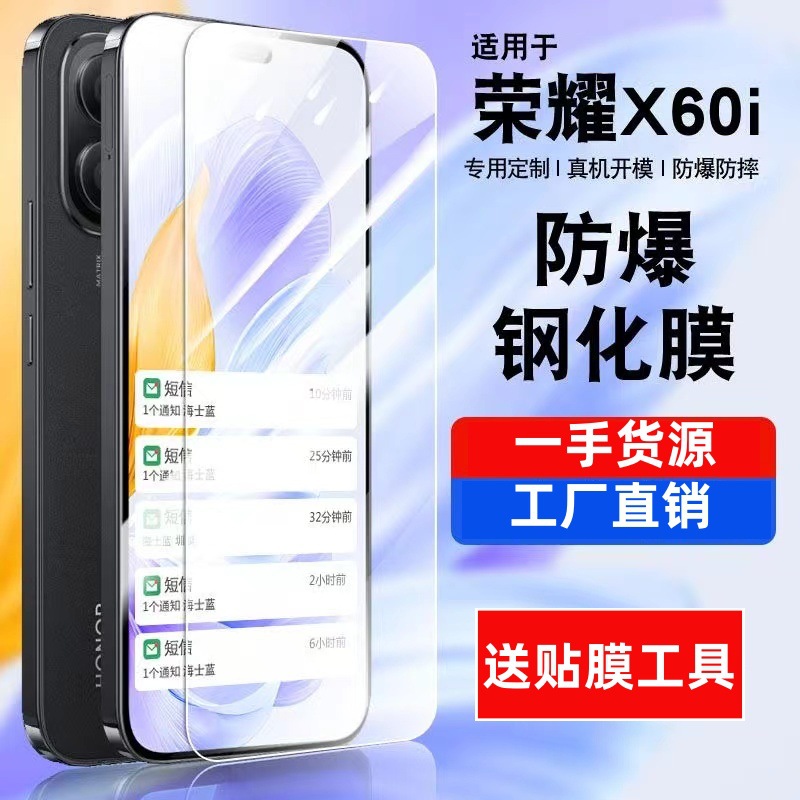 适用荣耀X60i钢化膜高清防爆防摔玻璃保护膜前膜LYN-AN00手机贴膜