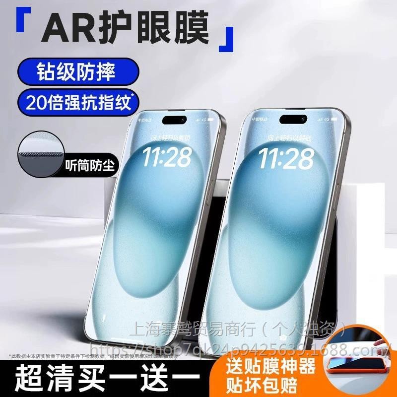 AR护眼德国进口}适用于苹果15钢化膜iphone14promax防摔13plus